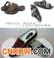 “电子遥控按摩拖鞋”内置智能电子低频脉冲发生器及无线遥控接收系统,并由聚合物锂电池提供电能;当智能电子低频脉冲发生器接收到遥控器的指令信息后,脉冲能量经过拖鞋垫表层的穴位按摩块传至足部。“电子遥控按摩拖鞋”有多种按摩模式与不同强度按摩选择,可提供四十种个性化的按摩感受以供体验。