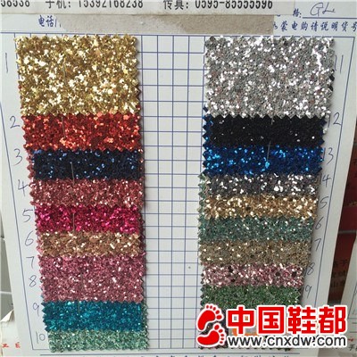 供应金葱格利特/特殊皮革/金葱印花革/PU革丽特鞋材面料