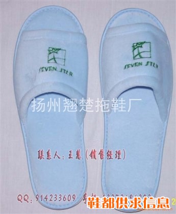 无纺布拖鞋,毛巾拖鞋,拉毛绒拖鞋,天鹅绒拖鞋,割绒拖鞋,华夫格拖鞋,真美布拖鞋等酒店宾馆用品。颜色、尺寸、店徽、按照客户要求生产/打样 。印制LOGO包括:常规印刷、胶浆印刷、电脑绣花等工艺。