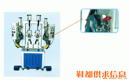 1、 本机配备有两组冷冻胶模组与两组橡胶热压组,而且冷冻上模使用橡胶胶模配合后踵扫刀,下模使用单一螺丝,固定换装迅速,增进生产效率。