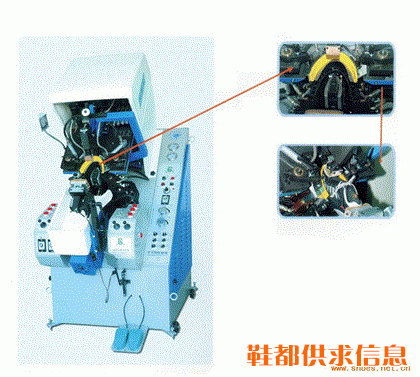 1、 全能束紧器及特别轨迹的扫刀,保证结帮后,鞋面均匀贴紧楦头,绝对不发角,增进美观,提高品质。