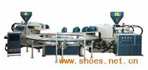 OY-8220 全自动圆盘式双色塑胶鞋底注射成型机性 能 特 点1、专门适于生产制造各类单色、双色运动鞋底,男、女鞋底及拖、凉鞋底等。2、原料方面适用于生产热可塑料塑胶原料PVC、TPR及TPU塑胶发泡,不发泡类。3、全自动电脑控制,所有运动资料均由9寸荧光屏中文显示,8套模具资料存储,可随时调用,具有系统的电源波干扰滤除保护装置,在电源不稳定的状态下,可自动切断电源,电脑探测软件可对机器各部分的工作状态随时进行检测,并能将检测结果显示屏幕。4、采用压力,流量双比例控制,可对不同模具的工艺要求进行控制。5、采用进口线性电位器控制射胶料理,精度可达0.1mm,射料准确,产品美观,质量稳定。6、加温区采用先进的电子固态继电器,可频繁无噪音地进行通断电,经久耐用,采用电热偶每秒三次循环检测,检温精度高,并将温度准确显示在控制箱上。7、模具平等度自动调整系统,可保护模具在不平行的情况下,仍然正常生产而确保产品质量,不起毛边。8、关模座结构结实锁模力大,一次锁模,二色色料可同时注射,即省时间,提高生产量,创造高利润。9、本机生产双色或单色成品。10、其生产量每小时约为150双。