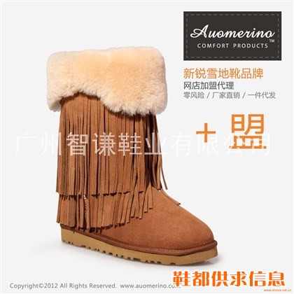 流苏中筒雪地靴批发AU8803,澳洲羊皮毛一体原材料,出口品质。