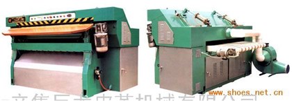 GPGT1-120/180型通过式抛光机(Through-feed Polishing Machine) 产品型号: GPGT1-120/180 产品用途: 本机适用于各类轻革在喷浆前或成革后的革面抛光。在喷浆前进行抛光,可使喷浆涂层均匀,结合力强,同时可节省涂料;在成革后进行抛光,可使粒面光滑细腻,革身柔软丰满,手感舒适,是提高皮革档次的理想工艺装备。 This machine is applicable to the polishing process of all kinds of light leather before the spraying or after the finishing. Before the spraying, the polishing enables the coating to reach even sickness, strong adhesion. It can also save coating stuff. After the finishing, it makes the surface of grain side glossy and fine, the leather rich and the touch soft. The machine is ideal technological equipment for improving the leather quality