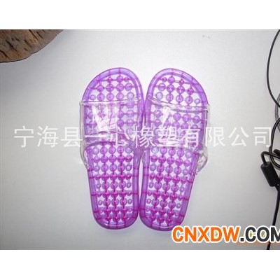 它是采用全新的PVC材料精制而成,具有环保.轻便.防滑.耐磨.鞋底不吸水.穿着舒适等优点.鞋面与鞋底可拆缷设计,清洗方便.洗脚.洗澡后,脚底部迅速排水,保持脚底部位正常干爽.通气.鞋面与脚底面接触的地方是由颗粒状的按摩点,在走动的时候具有人工手法按摩的功效,可促进血液循环.解除疲劳.多种颜色供客户可选择.由于我们选料精确,产品使用无毒材料制成,鞋底镂空,漏水透气,此鞋在室内不会扰人睡眠,又不会损坏木地板,适宜家庭.浴场.桑拿中心等场所.